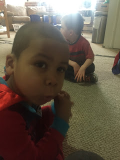 The children played with their horse props. They had a pretend barrel race with their horses. |