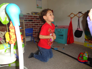 | S is dancing to "Shake the Trunk," to the tune of "Row your Boat." |