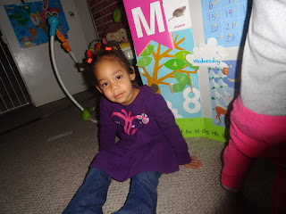 | C is exploring the theme poster. She s looking for things that make sounds. |